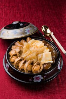 Stewed Baby Abalone, Fish Maw, Sea Cucumber and Mushrooms in Casserole - MOP 980