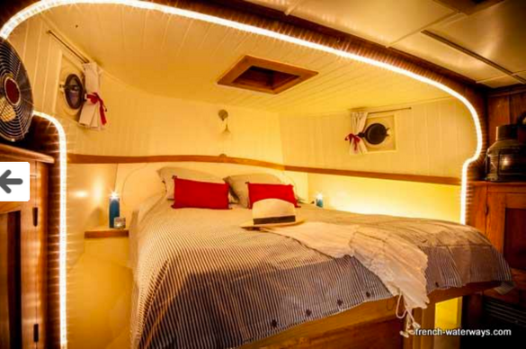 Hotel barge Mirage brings boutique living to the waterways of France. In years past, Mirage was a B&B barge. Now newly renovated for 2016, it offers full board cruising for six guests and hosts Pascal and Mimi welcome you aboard. Let us set the scene: the spacious saloon has a tasteful aviation theme, the dining table was once at home on Atlantic ocean liner, Olympia. There's even a piano and bass guitar on board.