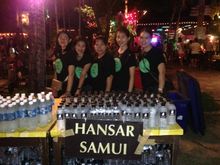 Hansar Samui supported with 1,500 bottles of drinking water, 1,000 bananas and cut oranges. The event started at midnight; all participants, which were approximately 1,200 people, came and gathered at the start to join the run 5 kilometers or 10 kilometers around the buzzy and lively streets of Chaweng Beach.