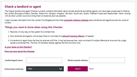 The Mayor's Rogue Landlord and Agent Checker is available at www.london.gov.uk/rogue-landlord-checker.