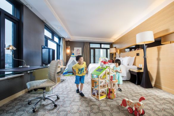 上海威斯汀大饭店推出的“童趣亲子房”配备20多款德国进口儿童玩具,包括开发思维及动手能力的森林动物游戏盒、造型逼真的印第安帐篷、音乐吉他、遥遥木马等。在提供各种妙趣玩乐的玩具同时,房内还配备为儿童量身定制的客房用品,如儿童拖鞋及浴袍。