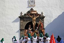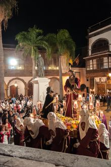 One of the most famous statues seen during Semana Santa is the Lord of the Cold Stone- a sculpture of a bloodied Christ, is paraded through the streets on Maundy Thursday, followed by crowds of thousands paying their respects to the religious symbol. The most emotive procession on the island, Santo Entierro, follows on Good Friday, and serves as a memorial for the burial of Christ. The holy figure's body is carried in an ornate gold painted coffin decorated with glass panes, accompanied by religious songs and members of the local parish carrying candles and flowers.