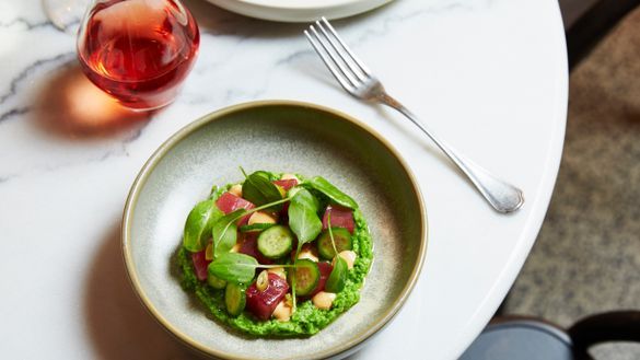 It’s a menu that has been designed to enjoy with a glass in hand (or quartino) and includes a selection of skewered snacks or pinchos, small and larger share-style dishes and Australian artisan cheeses, such as Holy Goat and Pyengana. Signature plates include Citrus-cured Hiramasa Kingfish with Horseradish Yoghurt, Verjuice and Carasau Bread, Gnochetti with Zucchini, Cime di Rapa, Fine Herbs, Chilli and Grana Padano and pinchos such as Manchego, Prosciutto and Picholine Olives or Crushed Broad Beans, Bocconcini, Sage and Lemon Croute. There’s many vegetarian options available, such as Tortelli of local haloumi, watercress, and lemon with broccoli puree.