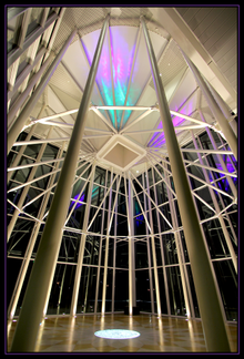- The glass atrium is a nod to early Native American architecture. Similar to an earthlodge, it is constructed with 20 poles. The special night lighting resembles the Northern Lights.