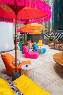 Guests will step onto Level Four and be instantly transported to a riverside paradise as they sip cocktails from bean bags or swinging hammocks overlooking the Brisbane River. Vibrant palm trees, tropical greenery, lantern lighting and bright Balinese umbrellas that recreate iconic scenes from Seminyak Beach.