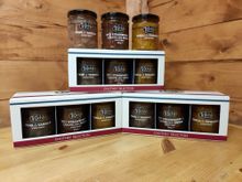 Matured over 2 years by the award-winning Shorrock family for a beautifully creamy and flavoursome taste and texture, the Lancashire Bomb Trio Box is a gift they'll love. Choose three of four flavours in 230g – the Vintage Gold (3 years old, perfect for lovers of strong cheese and great on cheese boards), Garlic & Herb (delicious melted on toasted ciabatta), Hot Chilli (for real heat) and the Smoked (flavoursome and perfect with a glass of wine). May contain peanuts, nuts, sesame, soya, gluten, lactose, mustard, and wheat products