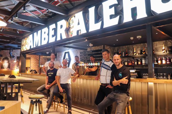 The 'Amber Alehouse' is a modern industrial bar hosting SEVEN BRO7HERS craft beers and cask ales. The new pub is aimed at pre-flight pints and travellers looking for incredible bar food – a local experience in the airport.
