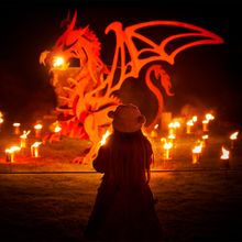 Fire: Lit by hand held lanterns, wander between flickering flames and majestic trees – from one amazing space to another, spot fire breathing dragons, a river of flames and fire balls.