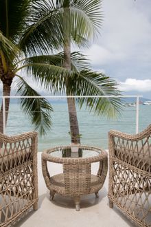 The bungalows and villa, all with aircon and ceiling fans, are decorated in a relaxed, coastal style, designed to reflect a true beachside vibe. Beautiful, intricately carved whitewashed furniture has been created by artisans in Northern Thailand, and in the beach villa, a bespoke four-poster bed with a romantic canopy is the highlight.