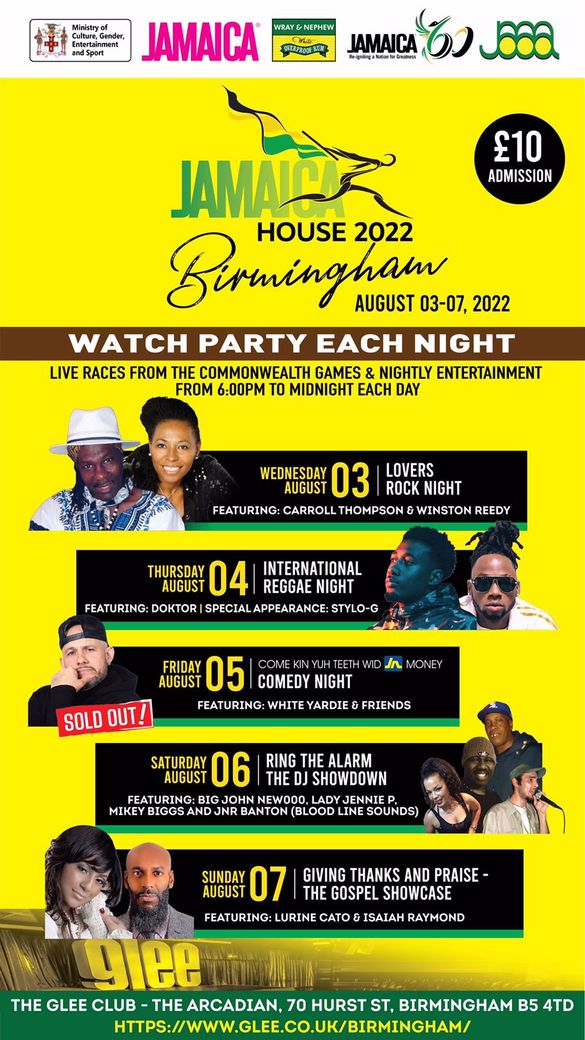 Jamaica's Tourist Board and Ministry of Culture, Gender, Entertainment and Sport will host Jamaica House as part of the year's spectacular celebration of Jamaica's 60th anniversary of independence. It will be held at The Glee Club, one of Birmingham's finest venues for comedy and live entertainment from 3 to 7 August and will highlight the best of Jamaican culture, music and gastronomy for fans of Jamaica, sporting enthusiasts and anyone wanting to be immersed in the joyful, vibrant welcoming spirit of the island. Jamaica's anniversary of independence falls on Saturday August 6.