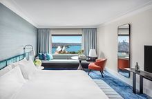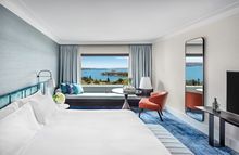 The hotel’s generously sized guest rooms are inspired by the property’s surrounding landscape. Drawing green and blue hues from the adjacent gardens and harbour through picture-frame windows, the redesign creates a connection and uninterrupted flow from indoor to outdoor. The quintessential Australian elements of water, sand, wood and sky, have also been incorporated, adding transparency, texture and tonal warmth and creating a homely and relaxing environment for guests to retreat.