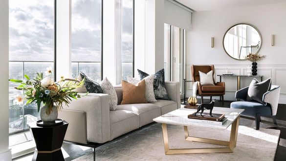 Working with its private client, Vesta transformed a one-of-a-kind, two-story penthouse apartment located at the prestigious St James development, White City Living. The interiors are chic, tonal, and reminiscent of the style and comfort of a luxury hotel.