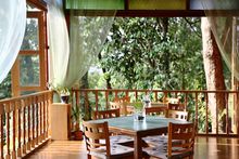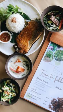 Most of the dishes at Ambong-Ambong include fresh, organic ingredients sourced from its own organic farm, Buluh & Tebing, which comprises a fish pond, fruit orchard, vegetable farm, flower and orchid nursery, and bamboo grove. The farm also has some animals, including free range chickens that supplies eggs to Ambong-Ambong, and three cows that provide natural fertilisers for the farm. The flower and orchid nursery supplies flowers and orchids to the resort and spa.