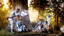 Van Driessche, who now lives in Thailand, spent months exploring the tribes of Papua New Guinea. He worked most closely with the Mudmen and Skeleton tribes and was thrilled when they agreed to build lodging for his photography tours. As they have worked together, Van Driessche has learned many of the legends and history that make each tribe distinctly different. Each tribe has unique ceremonies and festivals which require masks or body paint to create special, colorful appearances.