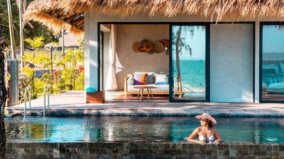 The resort features 82 Khmer-inspired one-and-two bedroom villas, some with private pools located directly on the beach, featuring modern amenities and thoughtful touches.