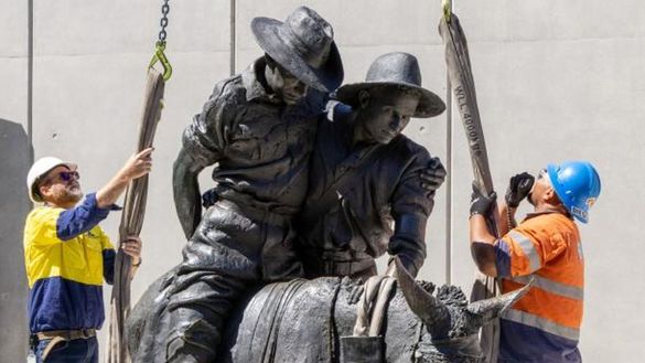 One of the Australian War Memorial's most beloved sculptures is set to reclaim pride of place at the new Main Entrance when it is carefully craned into position on Friday morning.