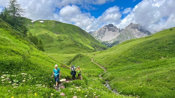 While winter sports resorts like Oberstdorf, St. Anton, and Lech often take center stage during spectacular ski and racing events, their true beauty is revealed in summer—as peaceful hiking paradises that captivate with their alpine charm. Starting from Oberstdorf, the first stage leads into the high alpine world. On the Krumbacher Höhenweg, wide vistas unfold, offering views of surrounding mountain peaks that are nearly unmatched in their grandeur. Along a section of the Camino de Santiago, the path heads toward Arlberg before descending into St. Anton. A hearty lunch in the midst of the stunning landscape provides the energy needed for the next stretch—the grand finale to Guggersee. A sparkling natural gem nestled in the Allgäu Alps, where the surrounding peaks are reflected in its serene waters.