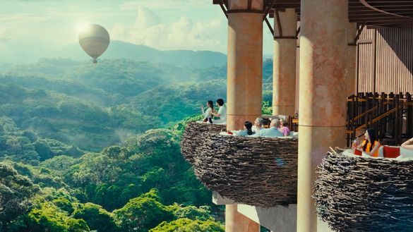 Stand-out attractions will include a gas-balloon ride (HORIZON BALLON) where guests can take in spectacular 360-degree vistas of the verdant green forests and emerald-green seas below, a DINOSAUR SAFARI which will whisk passengers through the savannah to meet the park's prehistoric inhabitants and a TREE-TOP TREKKING experience across a jungle suspension bridge.