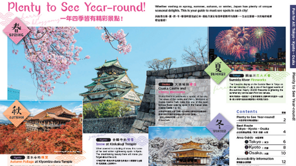 - Area guides with barrier-free access info (Tokyo, Kyoto, Osaka)