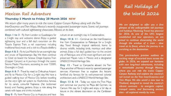 Tags: New rail tours, Mexico Rail Tour, Thailand Rail Holiday, Rail Tours for Christmas and Early 2026