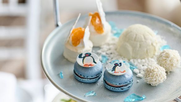 Among the savoury offerings guests will enjoy fairy bread with raspberry butter, panko and black sesame coated meatballs and mini fish finger burgers. Some of the sweet selections include an igloo dome with coconut mousse, Pingu snowballs and blueberry cheesecake macarons and more.