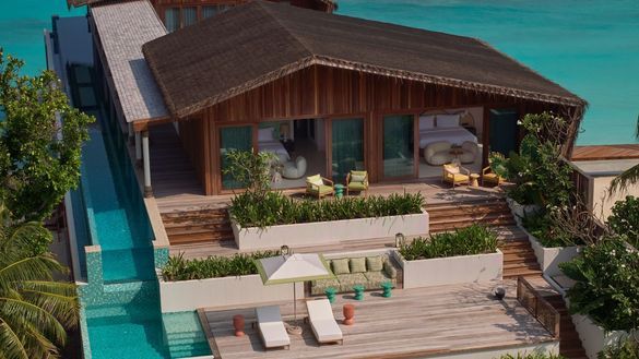 Stretching across the entire width of the island, the vast residences will straddle both land and sea and deliver the very best of Indian Ocean living with an overwater and beach villa concept all in one; designed to cater to those who do not want to choose. Hugging the two-storey villas and taking centre stage are the expansive 47-metre suspended sky infinity pools complete with waterfalls. Five of the villas feature three splendid en-suite bedrooms, sleeping up to eight adults, indoor and outdoor living, bar, fully equipped kitchen, an outdoor Big Green Egg and more than 1,200 sqm of living space. The remaining two residences are larger in size, offering an additional bedroom (four) for up to 11 adults. Alongside the 1,400 sqm of space, guests can enjoy the island's water sports centre offering motorised and non-motorised activities, a dedicated Roohu (butler), Dyson hairdryer and airwrap, and 24 hour in-villa dining.