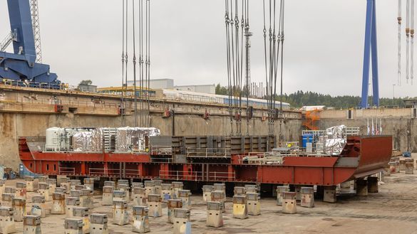 At the celebration, the very first building block was put into the dry dock, where construction of the ship will take place. The teams at Royal Caribbean and Meyer Turku sealed the deal – and good fortune – by placing a layer of freshly minted coins before an enormous steel block, known as the keel, was lifted and placed.