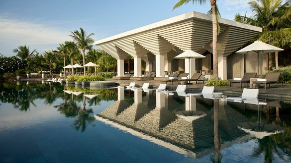 A bold expression of Asian-inspired design influenced by the five elements - wood, fire, earth, metal, and water - the resort was crafted by the renowned design studios of AND, SUPER POTATO, and PIA. This lush 22-hectare paradise is home to more than 1,000 species of indigenous flowers, trees, and shrubs. The arrival lobby – seemingly carved out of natural rock – creates a dramatic first impression, opening to serene views that overlook the resort's expansive landscape and set the tone for peaceful moments ahead. Woven seamlessly into its natural surroundings, the resort features winding pathways, swaying palms, and direct access to the soft sands of Bai Dai Beach (also known as Long Beach), a 10-kilometer stretch of shoreline lapped by turquoise seas.