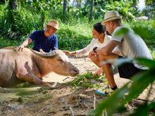 Families join local conservationists to plant native nipa palms and share a joyful, hands-on encounter with gentle water buffalo, learning about sustainable farming practices.