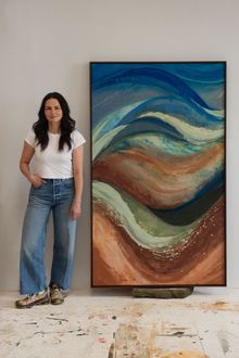 Meg Gallagher is a New Zealand-born visual artist whose work explores contemporary landscapes through layered colour palettes, organic lines, and a sustainable approach to materials. Raised in the rugged beauty of Otago, with early exposure to the arts through her father's role at the local art centre, Gallagher developed a creative voice from a young age. After graduating with First Class Honours in Fashion Design, she was named One to Watch by Vogue Italia and awarded a scholarship to study at Milan's Istituto Europeo di Design. Her career in fashion saw her take on leading roles at brands including Camilla and Marc, Insight, and Ksubi. Today, Gallagher brings her fashion background into her art practice by incorporating denim offcuts and vintage clothing into her work, transforming discarded textiles into textured, organic compositions using natural pigments, dyes, and bleach. Now based in Ōtepoti/Dunedin, her work draws deeply from nature and the landscapes that surround her. With solo exhibitions in Queenstown, Dunedin, Melbourne, Sydney, and Milan, Gallagher has developed an international following of collectors and collaborators. Her practice continues to centre on finding beauty in the overlooked and creating works that are both visually and environmentally resonant. Learn more at www.meggallagher.co.nz and www.instagram.com/meggallagher__.