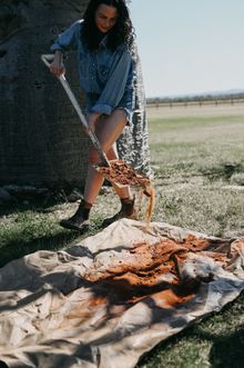 Renowned for her detailed use of worn textiles and denim offcuts in contemporary landscape art, Meg Gallagher became Bullo River Station's first artist-in-residence in July of this year. With a former career in denim design and a sustainable approach to materials, Meg connected with the significance of denim in outback Australia as well as Bullo's approach to regenerative agritourism, making her a natural fit for the collaboration.