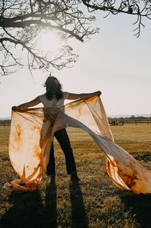 “My time at Bullo River Station was truly transformative,” says Gallagher. “Immersing myself in its vast landscapes, the stories of its people, and the energy of the land gave me an endless source of inspiration. I've worked with the station team's worn denim and fabrics, even dyeing cotton with Bullo's own red ochre, so the artwork doesn't just depict the outback, it quite literally contains pieces of it.”