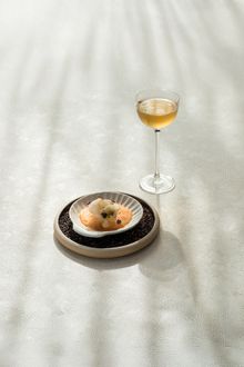 - Scallop matched with a passionfruit-yuzu-bamboo cocktail finished with wasabi salt