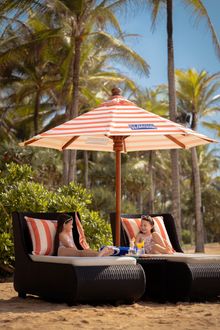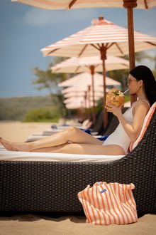 Along the golden sands of Nusa Dua, the beachfront Vista Bar adopts a vibrant new look, with co-branded umbrellas, cushions, and cabanas creating a chic seaside retreat.