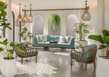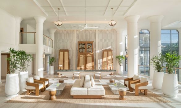 From the moment guests enter the light-filled lobby adorned with a handcrafted wooden Lighting, to the spacious suites and pool villas featuring white-washed oak and intricately carved wood details, every corner of the resort exudes sophistication. Outside, alfresco pavilions and living areas frame stunning ocean views, providing a serene backdrop for relaxation and reflection.