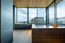 The top floor serves as a private wellness sanctuary, featuring a spa room with sauna, cold plunge, and soaking tub. For après-ski entertainment in the intimacy of your own home, guests can gather at the speakeasy-style indoor bar with shuffleboard, enjoy the BBQ grill facilities, or take in Niseko's clear skies from the rooftop bar and dining terrace.