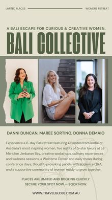Travelglobe is proud to announce The Bali Collective, an exclusive 6-day luxury women's retreat launching in March 2026. Designed for curious, creative and ambitious women, this immersive retreat blends world-class keynote speakers, wellness, creativity, and cultural connection, all set within the breathtaking surrounds of Jimbaran Bay, Bali.