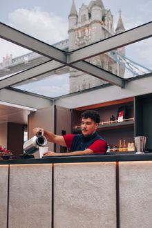 Interiors by Kate Woods, fifth-generation of the Woods family of Thames Watermen, pay homage to London's river heritage, echoing the heyday of city river cruising.. The design subtly connects the Tower of London and the River Thames through sustainable British materials and thoughtful detailing, including: