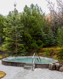 Positioned in Laugarás village, 94km from Reykjavík and between Geysir (33km) and Gullfoss (43km), this is one of the best locations in Iceland to witness the aurora borealis; immersing oneself in geothermal waters as the Northern Lights dance overhead is a true bucket list experience.