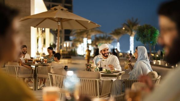 worship. There are two main meals in Ramadan: suhoor and iftar. Suhoor is the last meal eaten before the fast begins and takes place early in the morning before sunrise, and iftar is the meal that breaks the fast at sunset. It is a special time to visit Abu Dhabi, with unique nighttime dining and festive traditions. Everyone can enjoy the added festivities that the destination has to offer during the month, with