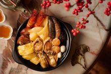 今年更新推出农历新年不可或缺的「盆菜」,有着丰衣足食的意涵,手工制作,精选鲍鱼、原粒北海道元贝、金蚝及多款经典配料。堂食两位用(港币1,288元)或可于香格里拉精品店订购外卖盆菜(港币2,888元),香格里拉会会员更可尊享折扣优惠。