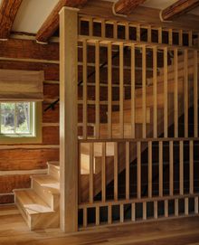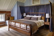 Originally constructed over 130 years ago, Chuck's Cabin is the first new guest cabin added to Dunton since opening more than 20 years ago (it is one of the original structures in the town), and was meticulously restored by Waldo Works. The design preserves original elements like the hand-hewn log walls while introducing warm, natural textures, custom-built furniture, a wood-burning stove, and a new wide-plank oak floor. One of the largest accommodations available at Dunton, at 1,620 sq ft, the four-bedroom, multi-level Chuck's Cabin is perfect for families or groups of friends and features three floors and a daylight basement. On the main floor, guests enjoy a Queen bedroom accommodation with an en-suite bathroom. On the top floor, a King bedroom features an en-suite bathroom with a luxurious soaking tub, complemented by a spacious rain shower tiled in turquoise blue. The daylight basement offers two bedrooms with bunk beds in each, complete with a large bathroom with a separate tub and shower. The cozy living room offers a wood-burning stove with large windows boasting views of the serene mountain surroundings and the babbling Dolores River.
