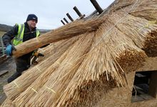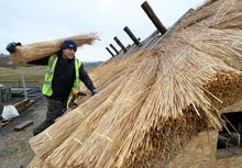 The traditional craftsmen are creating thatched structures for the dramatic lakeside set - one of the centrepiece attractions of the ambitious new live action show park, opening this July.