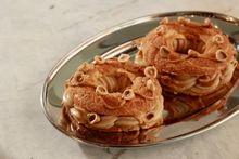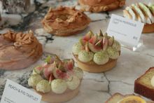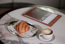 Standout specialty pastries on the menu include a Paris-Brest served with fresh praline flavoured cream, apple caramel danish, peach and fig tartlet and croissants served as plain, chocolate or almond.