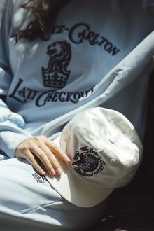 Everyday essentials are thoughtfully crafted to deliver a sense of playfulness. The Globe Cap, available in navy and white, combines functionality with sensible style, while home pieces such as the woolen Globe Throw and the navy and white Umbrella detailed with elegant gold metallic accents and a sculpted bamboo handle, infuses Late Checkout's distinctive aesthetic imbued with The Ritz-Carlton's elegance into daily life with effortless sophistication.