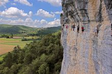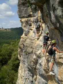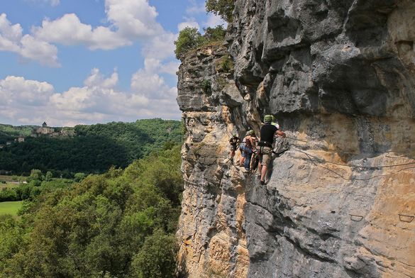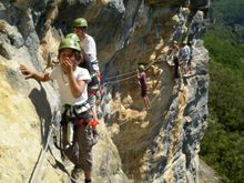 Équipés de casques et de baudriers, solidement arrimés à la paroi par une ligne de vie continue, nos visiteurs les plus courageux ont la possibilité d'évoluer à plus de 100 mètres au-dessus de la vallée en toute sécurité, grâce à un parcours insolite, ludique et acrobatique, entièrement aménagé. Émaillée d'échelons, de prises, de poutres et d'encorbellements spécialement imaginés pour faciliter la progression à flanc de rocher, la Via Ferrata offre une vue spectaculaire et une expérience de haut vol que vous n'êtes pas prêt d'oublier.