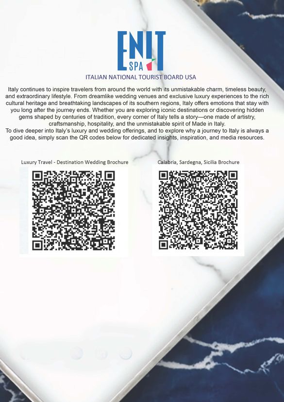 To dive deeper into Italy's luxury and wedding offerings, and to explore why a journey to Italy is always a good idea, simply scan the QR codes below for dedicated insights, inspiration, and media resources.