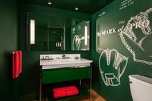 Even the washroom continues the story, featuring a graphic inspired by Rawlings' original padded glove patent, complemented by field-green accents and themed amenities. Custom carpeting, bedding, and ballpark design details tie the entire experience together into a fully immersive tribute to Rawlings baseball. And for added excitement, the hotel will have a Gold Glove Trophy on hand for commemorative photos.