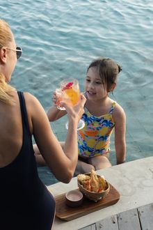 Adding to the experience is the visually striking shuttle journey from the resort down to Uma Beach House, which has quickly become a memorable part of the outing in itself — especially for families and younger guests. The scenic descent from Umana Bali's clifftop perch to the shoreline offers a dramatic sense of arrival and reinforces the destination feel of the experience.