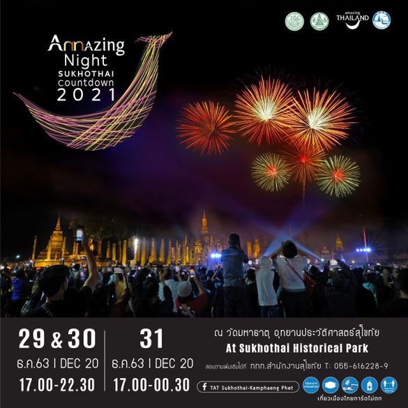 Bangkok, 16 December, 2020 – The Tourism Authority of Thailand (TAT) is pleased to announce that the Amazing Night Sukhothai Countdown 2021 event will take place at Sukhothai Historical Park over three days from 29 to 31 December 2020.